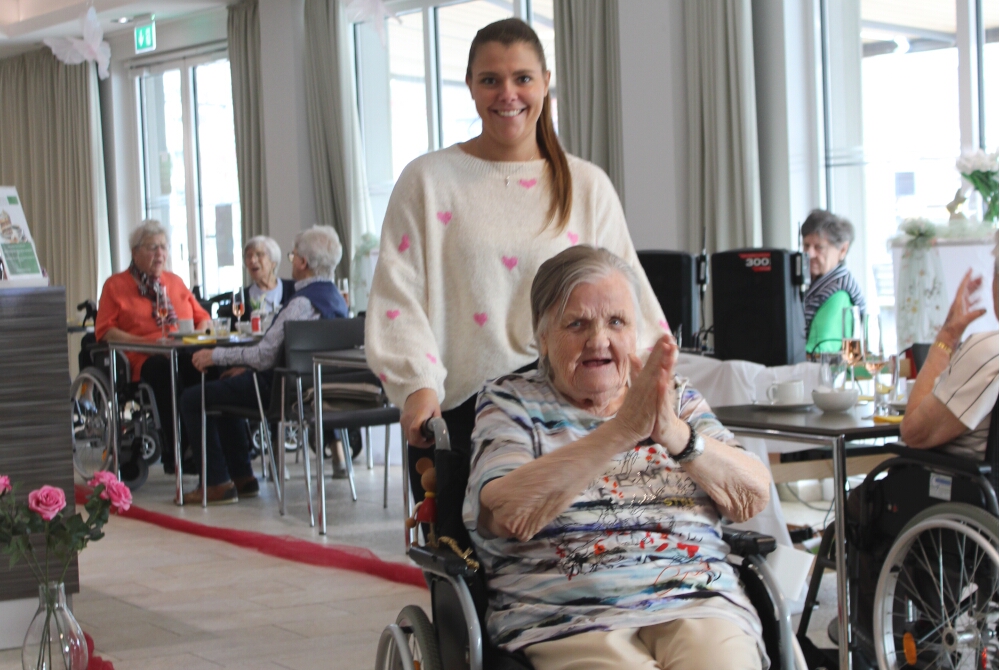 Modeln ist für einige schon zum Hobby geworden – nachdem bereits mehrfach erfolgreich Modenschauen in der Residenz stattfanden: Sowohl das Publikum als auch die Models freuen sich immer wieder über das gemütliche Event. In geschmückter Kulisse bei Kaffee und Kuchen oder einem Glas Sekt genießen sie die Show und bewundern die neuste Mode. Die hatte dieses Mal wieder die Familie Caroppo von „Mode auf Rädern“ mitgebracht, vorgestellt und kommentiert. Einige Bewohnerinnen hatten sich bereit erklärt, verschiedene Kleidungsstücke vorzuführen und waren über den Laufsteg gelaufen.