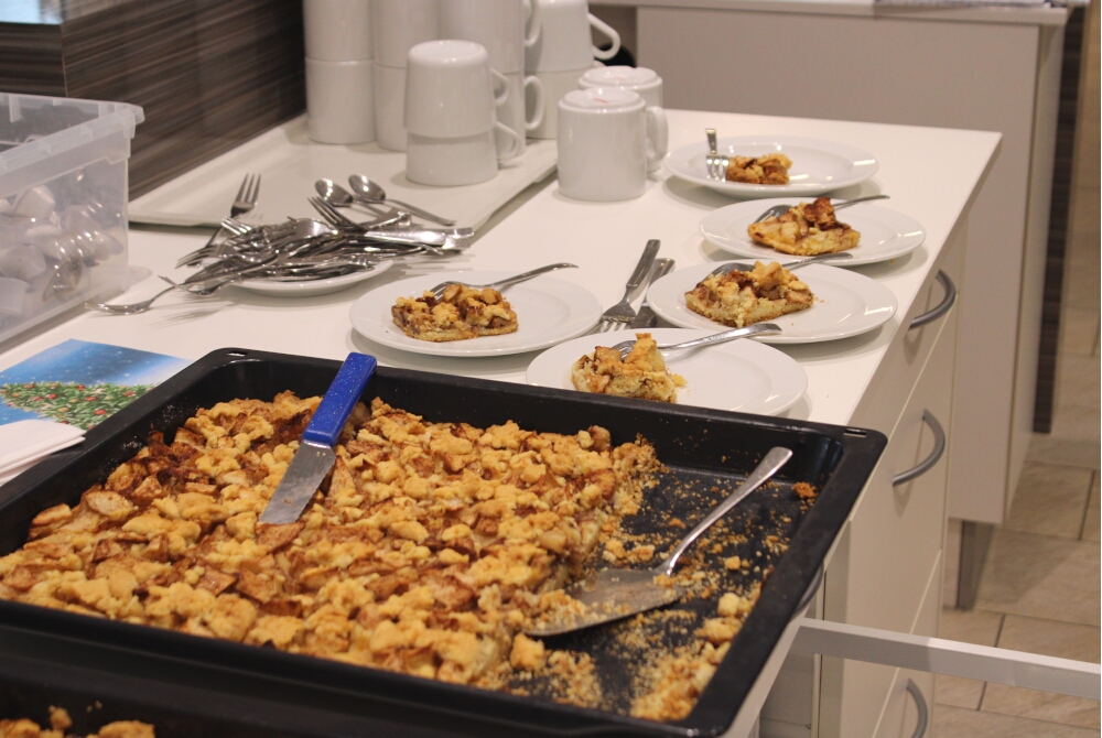 Viele fleißige und helfende Hände: Am 22. Dezember 2025 versammelten sich zahlreiche Bewohnerinnen und Bewohner zum gemeinsamen und gemütlichen Apfelkuchen-Backen.