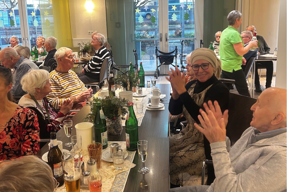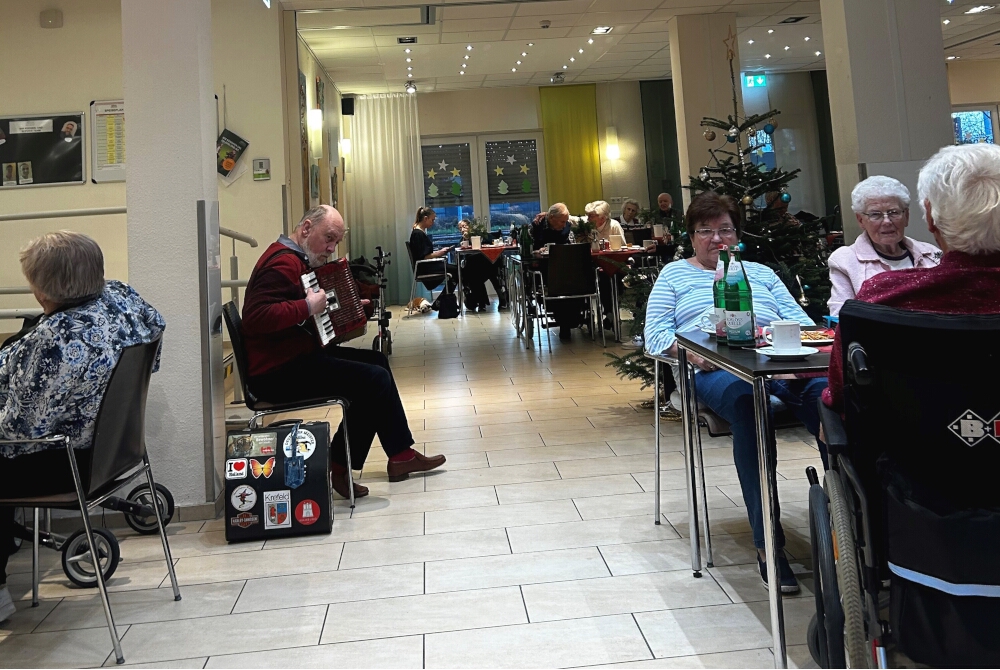 Im hauseigenen Restaurant hatte das Akkordeon-Konzert vom ehrenamtlichen Mitarbeiter Engelbert Wassen den Auftakt gebildet: Dabei hatten die Seniorinnen und Senioren beim Adventssingen mit in die Klänge eingestimmt – und sie hatten bekannte Advents- und Weihnachtslieder mit Schwung mitgesungen.