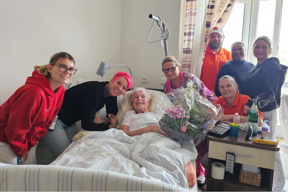 Ein besonderer Höhepunkt des Auftrittes war das Extraständchen für Bewohnerin Margret Thorissen, die genau an diesem Tag ihren 96. Geburtstag hatte. Aidara Seck hat für die Jubilarin „Happy Birthday“ auf der Trommel gespielt und viele Zuhörer haben mit eingestimmt. „Frau Thorissen hat sich unglaublich gefreut“, erzählt Einrichtungsleiterin Sandra Trispel, „und das Konzert war wirklich wieder wundervoll. Den beiden gelingt es auf ganz einnehmende und herzliche Weise, die Bewohner einzubeziehen, zur Bewegung zu animieren, mitzusingen und alles rundherum vergessen zu lassen. Wir möchten jetzt jeden Monat solch ein Konzert ermöglichen!“