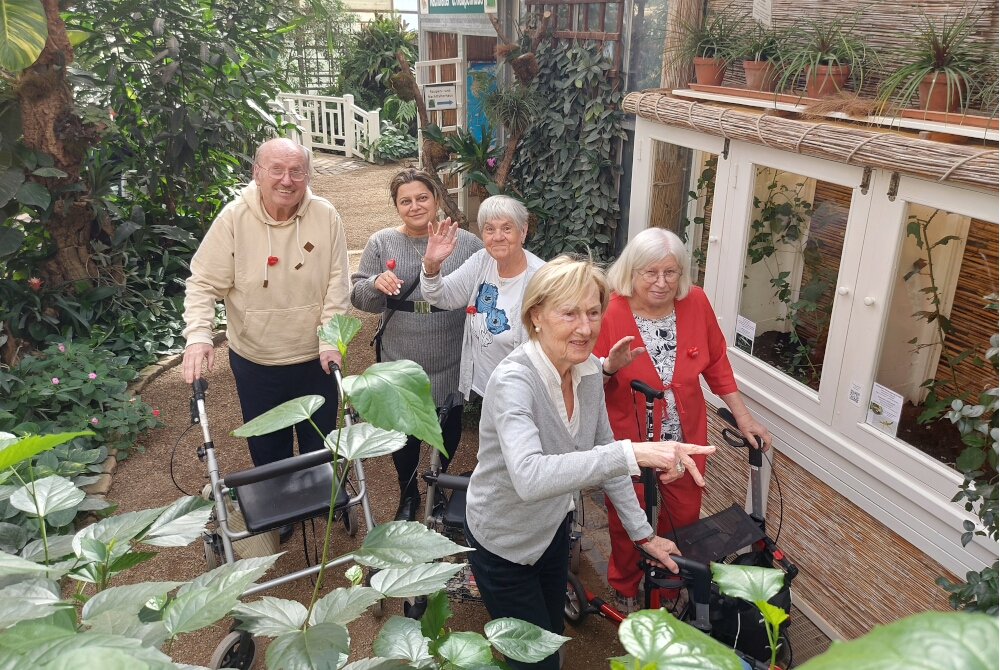 Im Erdgeschoss der Senioren-Residenzerwarten die Bewohnerinnen und Bewohner ein Foyer, ein Friseur und ein Restaurant, das sich bewusst auch an externe Besucher richtet. Sichtbeton, filigrane Möbel und ein stimmiges Farbkonzept prägen den Speiseraum. Zwei große Fensterfronten – eine in Richtung Bahnhofstraße und eine in Richtung Garten – öffnen den Blick in die Stadt sowie in die Natur. Serviert werden ausschließlich frisch im Haus zubereitete Speisen. Ein engagiertes Küchen- und Serviceteam unterstreicht den Hotelcharakter und sorgt für eine gesunde, abwechslungsreiche Ernährung. Eine kleine Terrasse verbindet das Restaurant mit dem verschlungenen Wegesystem des Demenzgartens.