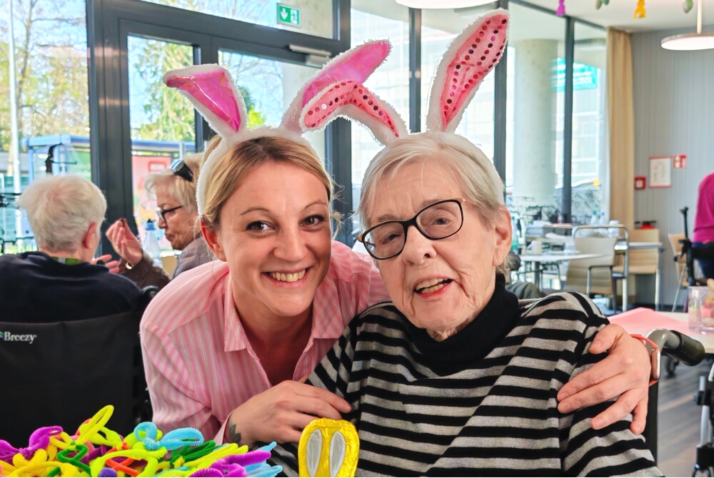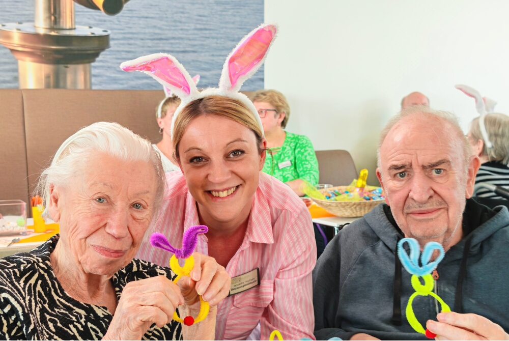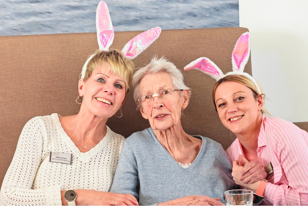 Festlich dekoriert mit Blumen, Eiern und Hasen: Im hauseigenen Restaurant hatten sich alle versammelt, um dem für das Fest engagierte Alleinunterhalter zu lauschen. In der gemütlichen Atmosphäre hatten sich die Feiernden bestens miteinander unterhalten und die Gespräche genossen.