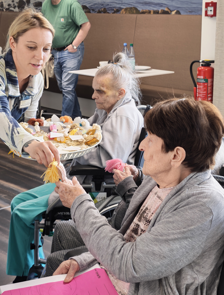 Beim BELLINI-Gottesdienst betrachteten die Bewohnerinnen und Bewohner gemeinsam mit dem Pater den Frieden als ein Geschenk Gottes und beteten dafür, dass in Kriegsgebieten die Waffen schweigen und Menschen sich versöhnen. Passend hierzu hatten die Mitarbeitenden des Betreuungsdienstes das hauseigene Restaurant mit Friedenstauben und Engeln dekoriert. Jeder Bewohner und jede Bewohnerin erhielt als kleine Geste einen selbstgebastelten Engel, der symbolisch für positive Kräfte, Schutz und Hoffnung steht.