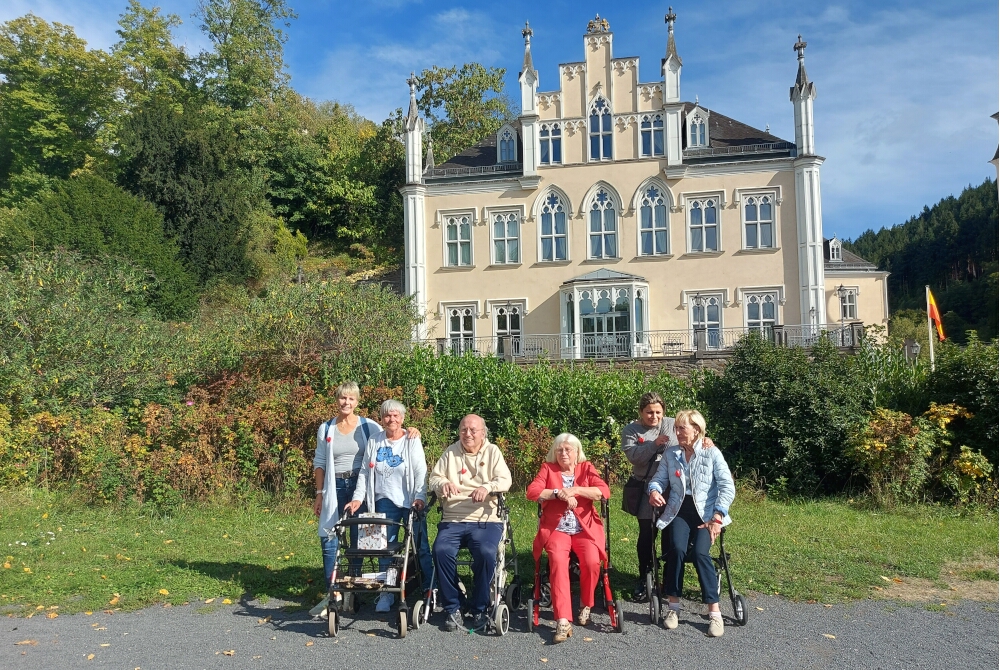 Exotisches Paradies in historischer Kulisse: Sayn liegt knapp 15 Autominuten entfernt von der Senioren-Residenz, von der die Bewohnerinnen und Bewohner ihren Ausflug starteten. Angekommen am Ausflugsziel erblickten sie eine Märchenwelt in wunderschöner Landschaft – so beschreibt es das Fürstenpaar Alexander und Gabriela zu Sayn-Wittgenstein-Sayn. Die Beschreibung hält, was sie verspricht und das seit Jahrzehnten.