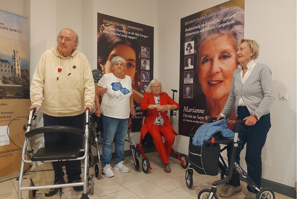 Private Einblicke bot das Neue Museum Schloss Sayn: Das liegt unterhalb der Stammburg und dorthin ging die Ausflugsgruppe nach dem Gartenbesuch. Sie machten sich durch eine Ausstellung mit europäischer Geschichte sowie der Fürstenfamilie vertraut. Sie erfuhren auch von der Stiftung Filippas Engel, die junge in Europa lebende Menschen, die sich für andere einsetzen, auszeichnet. All diese Eindrücke im fürstlichen Flair nahmen die Seniorinnen und Senioren als wunderschöne Erinnerungen schließlich dankbar mit zurück in die Einrichtung.