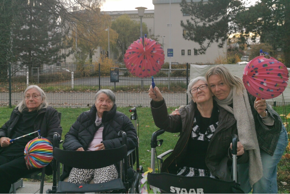 Martinsfest im ganzen Haus mit Laternen als Deko: Drinnen empfingen die Seniorinnen und Senioren auch junge Gäste, mit denen sie traditionell Martinslieder sangen und lachten. Sie aßen leckere Weckmänner – ein Gebäckstück in Form eines Mannes – und tranken gemütlich eine Tasse Cappuccino dazu. Dann hörten sie passend zur Stimmung das Gedicht „Ein bisschen so wie Martin“ von Elke Bräunling.